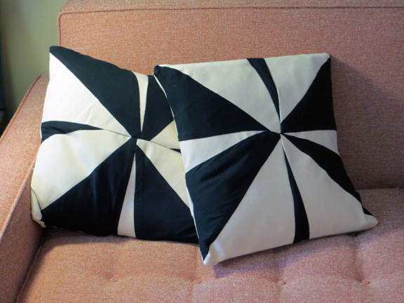 One small project that I did complete was recovering these throw pillows. The white fabric is canvas, the black fabric was the bottom of a “maxi” dress which, at its full length, was too hot to wear in DC.