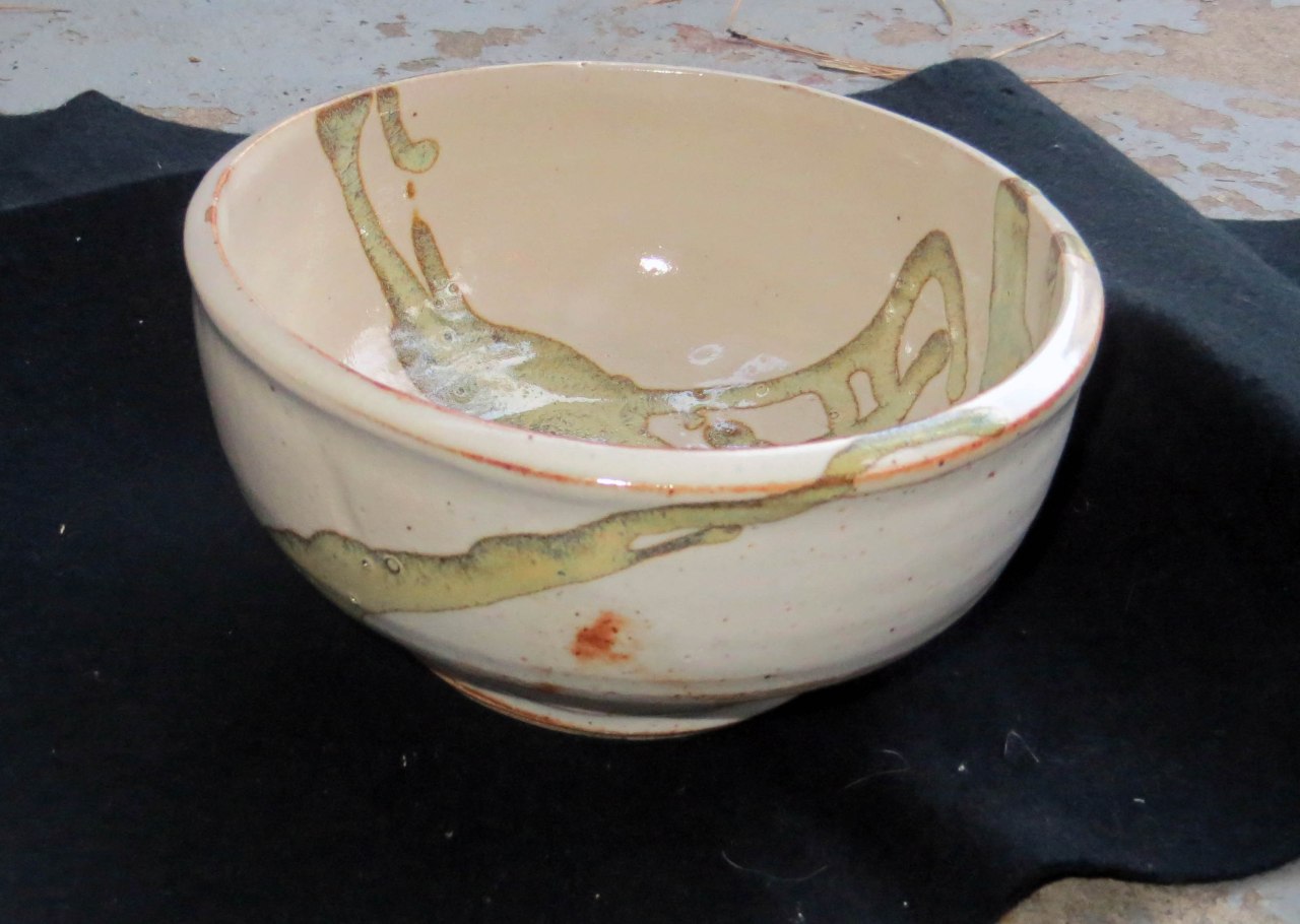 Are those fingerprints of genius on that green/red bowl? It looks like a raku kiln effect in coloring. Wondrous!